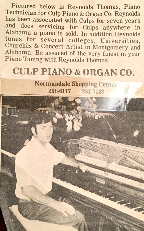 Before starting his own business, Thomas Piano Service, Reynolds got his start tuning for Montgomery-area Piano Stores like Culps.